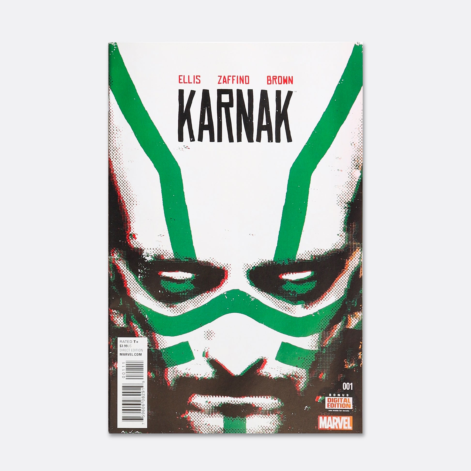 Add Karnak #1 (2015) to your comic book collection! Written by Warren Ellis and illustrated by Gerardo Zaffino, this first print comic book features the intriguing character Karnak. Discover the flaw in all things alongside Phil Coulson in this 36-page full-color adventure. Rated T+ for mature readers.